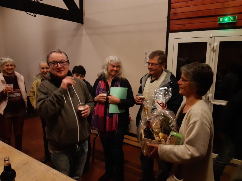 Pour fêter les fêtes de fin d'année, le comité des fêtes a offert le pot de l'amitié aux participants ainsi qu'un cadeau à Maurice pour avoir bien voulu prendre en main la section de chant. Prochaine répétitions le 13 janvier.